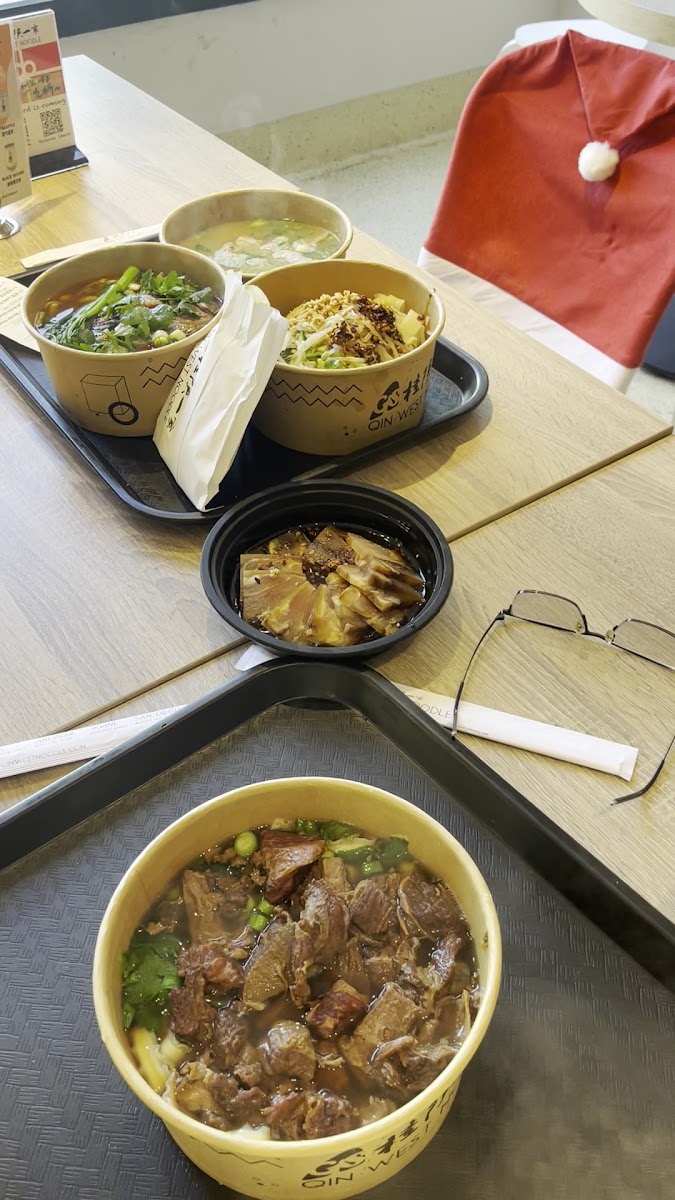 Their menu is packed with savory options, but what stands out most is the signature noodle dishes. The noodles at Qin West Noodle are handmade, ensuring that every bite is fresh and full of flavor. Whether you're a fan of beef, chicken, or vegetarian options, there's something to suit all tastes. I personally recommend trying the beef noodle soup. The broth is rich and flavorful, with a depth that can only come from long hours of slow cooking. The noodles themselves are the perfect balance of soft and chewy, adding texture and comfort to the dish.